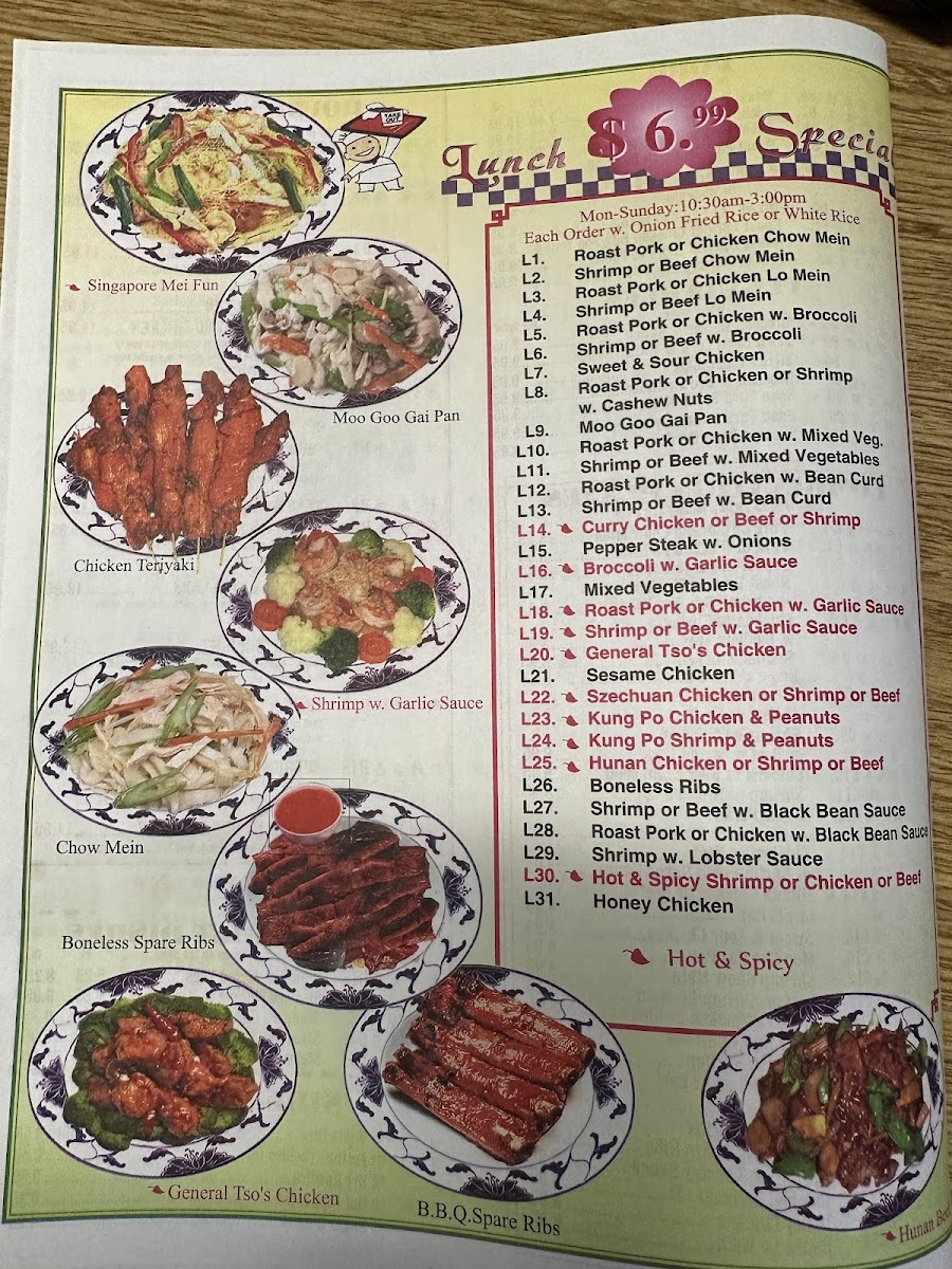 For those looking for satisfying entrees, chicken dishes such as Sweet and Sour Chicken or Curry Chicken with Onion bring familiar, hearty options that pair well with steamed rice or noodles. Vegetable selections like Eggplant with Garlic Sauce and Bean Curd Szechuan Style add a touch of spice and freshness for a balanced experience.